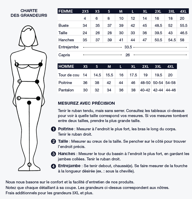 Uniforme de couleur : Lavage à la machine à l’eau tiède ou froide. Ceci aidera votre vêtement à conserver son élasticité.